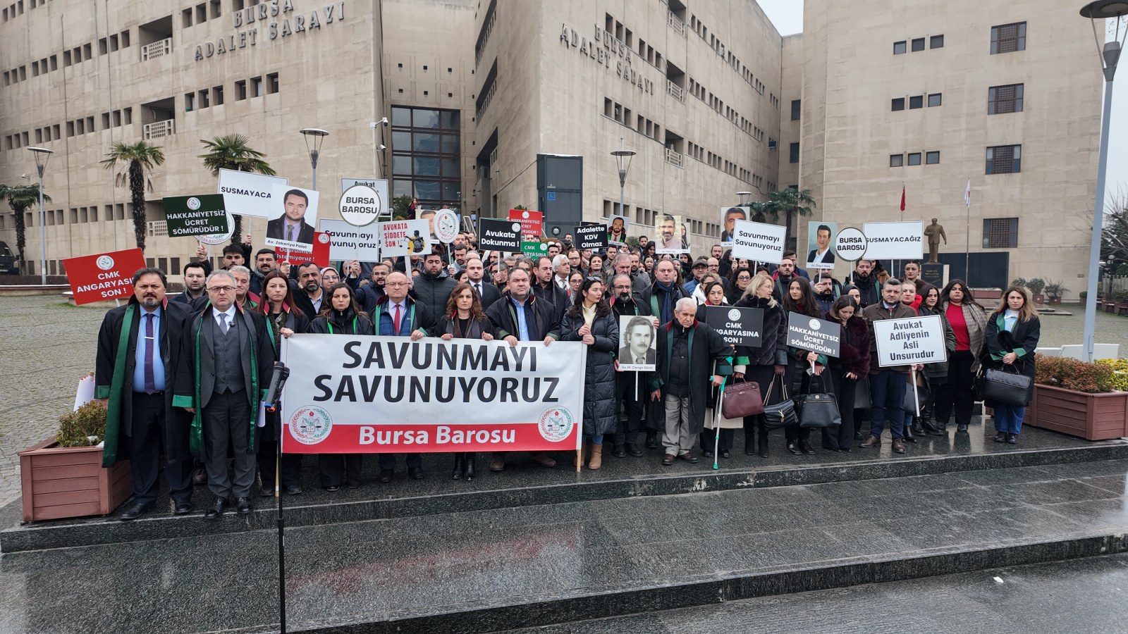 BURSA BAROSU BAŞKANI AV. ÖZTOSUN, MESLEKTAŞLARIYLA BİRLİKTE ADLİYE ÖNÜNDE:
