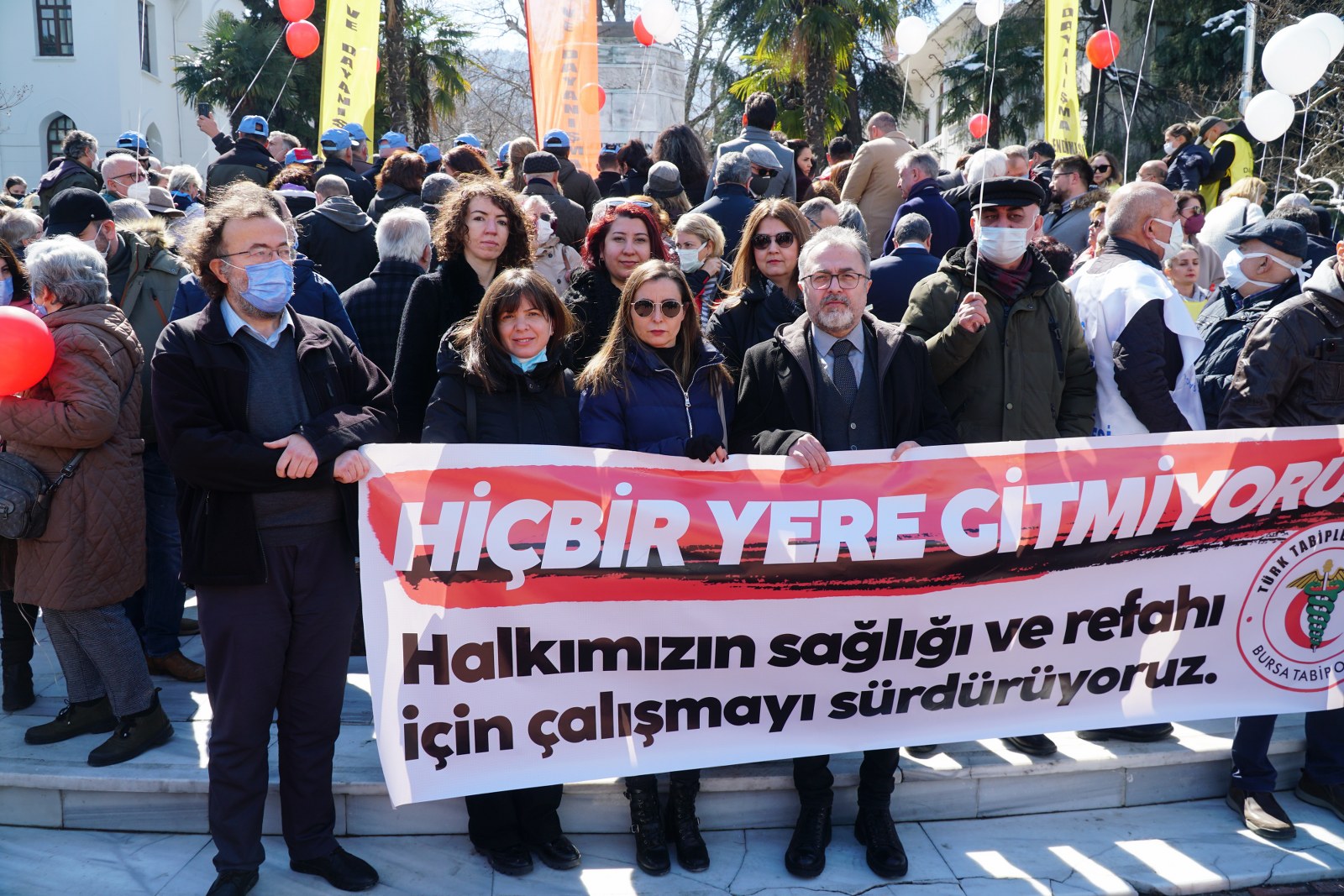 Bursa Barosu; Bursa Tabip Odası, Aile Sağlığı Çalışanları Ebe ve Hemşire Dernekleri Federasyonu, Bursa Aile Hekimleri Derneği, Genel Sağlık İş Sendikası, Sağlık ve Sosyal Hizmet Emekçileri Sendikası Bursa Şubesi'nin oluşturduğu Bursa Sağlık Platformu'nca Setbaşı Mahfel önünden Cumhuriyet Alanı'na yapılan protesto yürüyüşünde hekim ve sağlık çalışanlarının yanındaydı.