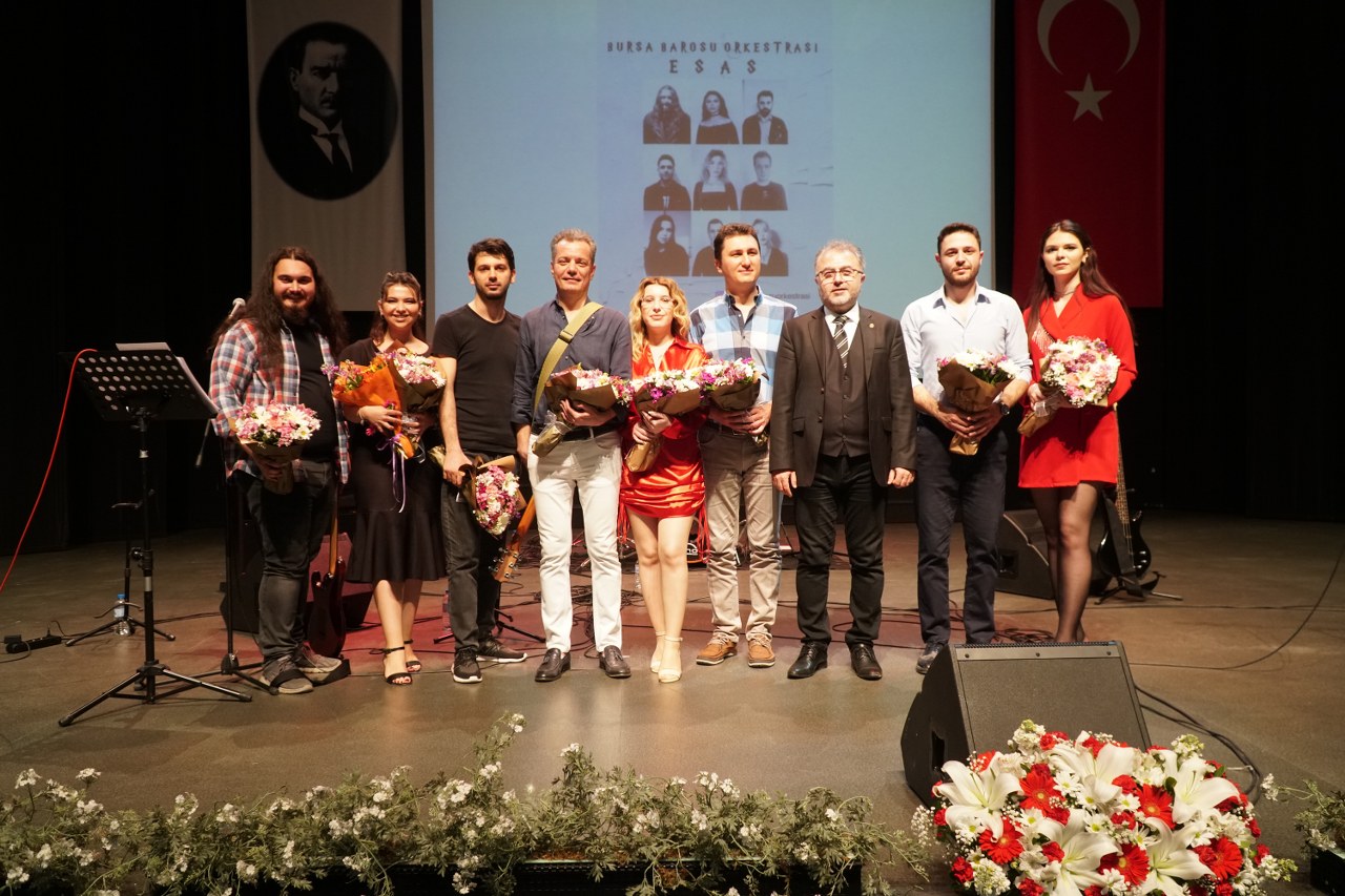 Bursa Barosu Orkestrası ESAS, BAOB Oditoryum'da konser verdi. Bursa Barosu Başkanı Av. Metin Öztosun ile yönetim kurulu üyelerinin de izlediği konserde, orkestrayı oluşturan avukat müzisyenler başarılı bir performans sergiledi. Başkan Öztosun, konser sonunda orkestranın tüm üyelerine ayrı ayrı çiçek verdi.