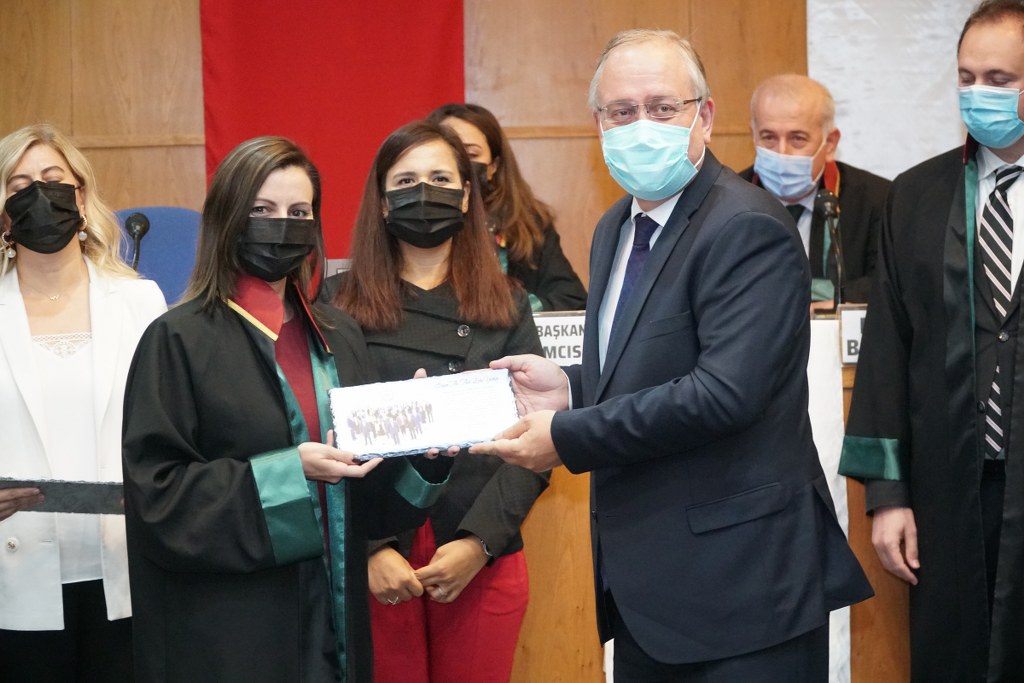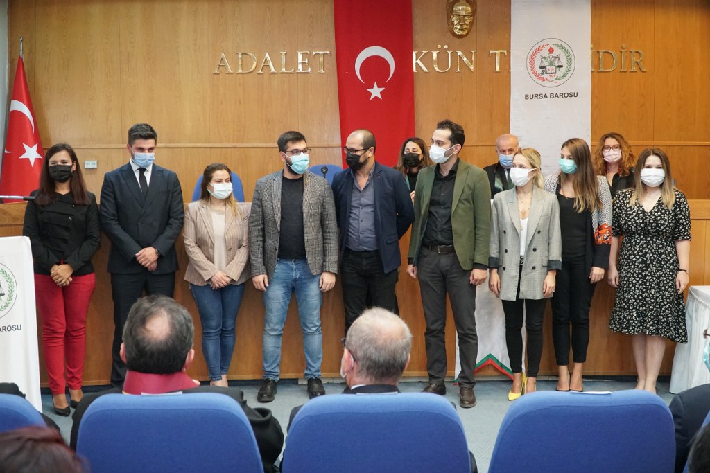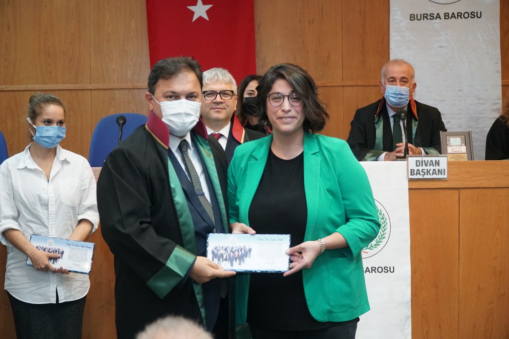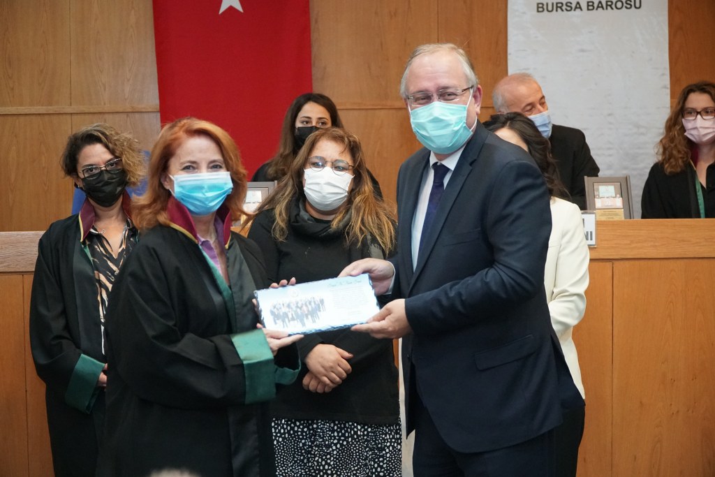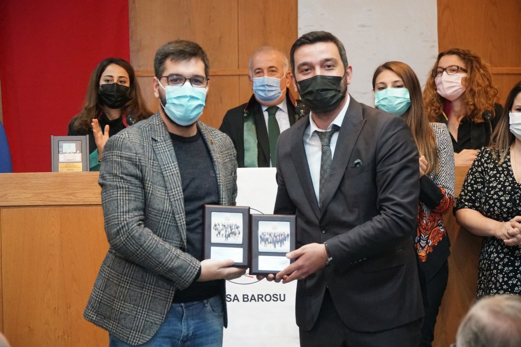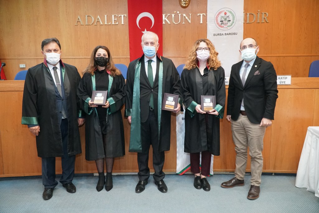 Konuşmaların ardından, yönetim, denetleme, disiplin kurullarının üyeleri ile TBB delegeleri arasında görev devir teslimi yapıldı. Önceki dönem kurul üyeleri, TBB delegeleri ve yönetim kurulu genç temsilcilerine Bursa Barosu'nca hazırlanan plaketler verildi.