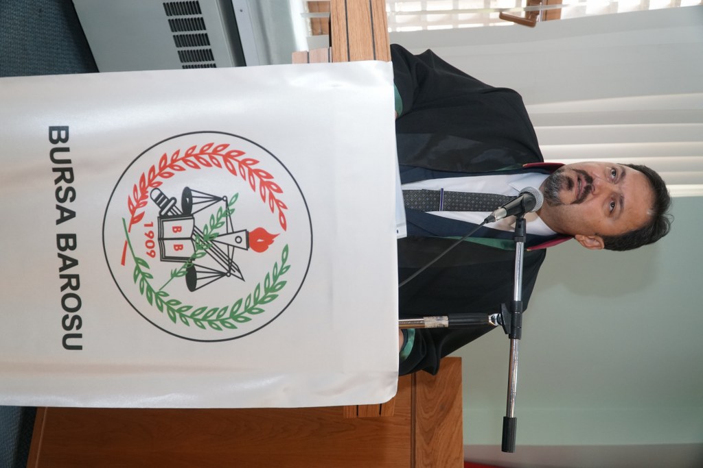 Divan heyetini görevi sona erdikten sonra kürsüye gelen Bursa Barosu Başkanı Av. Gürkan Altun, bir dönemi daha başlattıklarını belirterek “Gerçi yarım dönem bu. Fazladan yaptırılan bir dönem vardı, şimdi de eksik bir dönemimiz var. Kendi fazlamız kendi eksiğimizi tamamlayacak ve bir dönemi bitirmiş olacağız. 1.5 yıla yakındır meslektaşım ve yönetim, denetim ve disiplin kurulu, TBB delegesi ve yönetim kurulu genç temsilci adayları sahadaydı. Çalıştılar, sorunları tespit ettiler, çözüm önerilerine yönelik görüşlerini dile getirdiler. Önceden planladığımız yapacaklarımızın yanında bunlar da yol haritamızı oluşturacak” dedi.