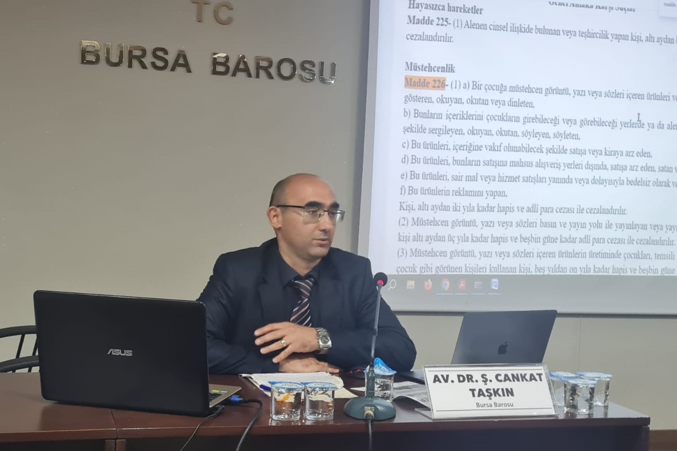 Bursa Barosu Çocuk Hakları Merkezi'nin 5 Nisan Avukatlar Günü etkinlikleri kapsamında düzenlediği “Dijital Dünyada Çocuk İstismarı" başlıklı paneli, BAOB Av. Özgür Aksoy Konferans Salonu'nda gerçekleştirildi. Bursa Barosu'ndan Av. Dr. Ş. Cankat Taşkın, Siber Güvenlik Uzmanı Valit Aslankol, Adli Tıp Uzmanı Prof. Dr. Halis Dokgöz, Mudanya Üniversitesi Sağlık Bilimleri Fakültesi Dekanı Psikiyatrist Prof. Dr. Remzi Oto'nun bilgi paylaşımında bulunduğu panel sonunda Bursa Barosu Başkanı Av. Metin Öztosun ve yönetim kurulu üyesi Av. Müberra Gülen Aydın ve Çocuk Hakları Merkezi başkanı Av.Ezgi Bilgin konuşmacılara anı plaketi verdi.