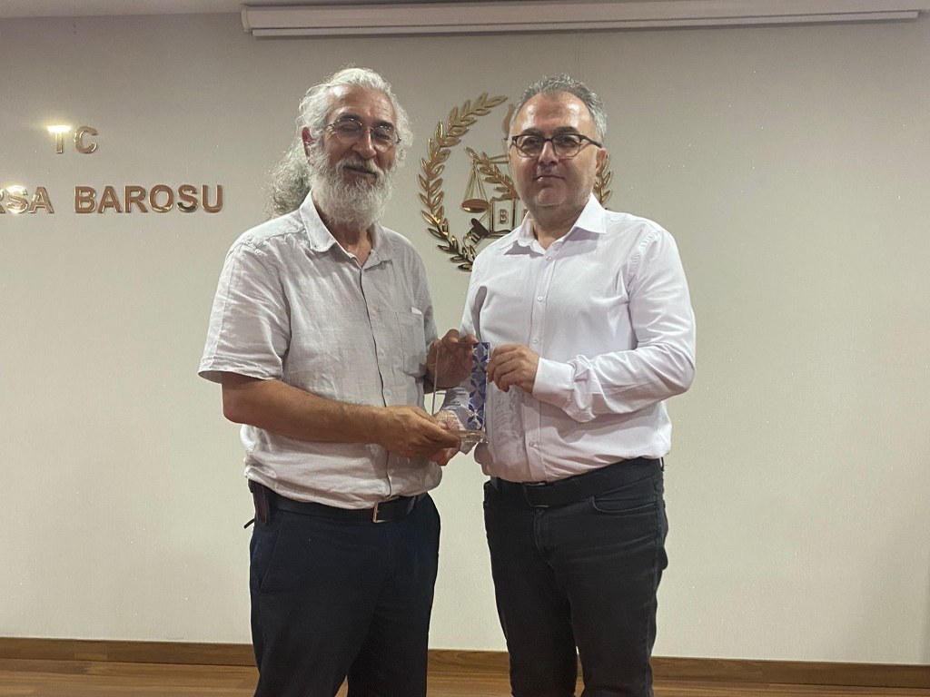 Bursa Barosu İş ve Sosyal Güvenlik Hukuku Komisyonu öncülüğünde düzenlenen “Emeğin Hukuku” başlıklı konferans BAOB Av. Özgür Aksoy Konferans Salonu'nda gerçekleştirildi. Çalışma ve Toplum Dergisi Genel Yayın Yönetmeni Av. Dr. Murat Özveri'nin konferansını Bursa Barosu Başkanı Av. Metin Öztosun ile yönetim kurulu üyeleri ve avukatlar izledi. Konferans sonunda Metin Öztosun, konuşmacı Özveri'ye anı plaketi takdim etti.