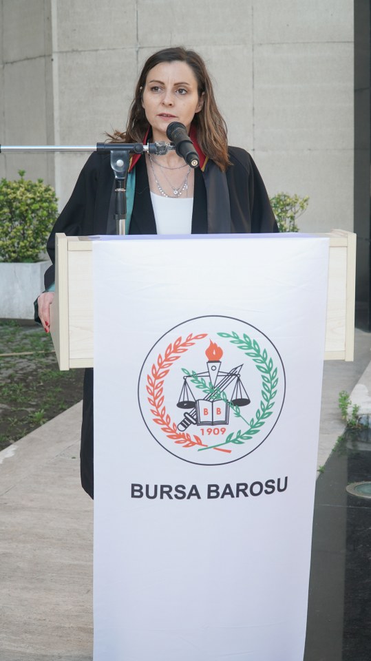 Meslektaşlarına ve anma törenine katılanlara hitap eden Bursa Barosu Başkan Yardımcısı Av. Aslı Evke Yetkin, “Ne yaparlarsa yapsınlar Mustafa Kemal Atatürk'ün özgür, tam bağımsız ve muasır medeniyetin üstüne çıkma hedefinden bizleri hiçbir zaman saptıramayacaklardır” dedi. Yetkin şöyle konuştu: