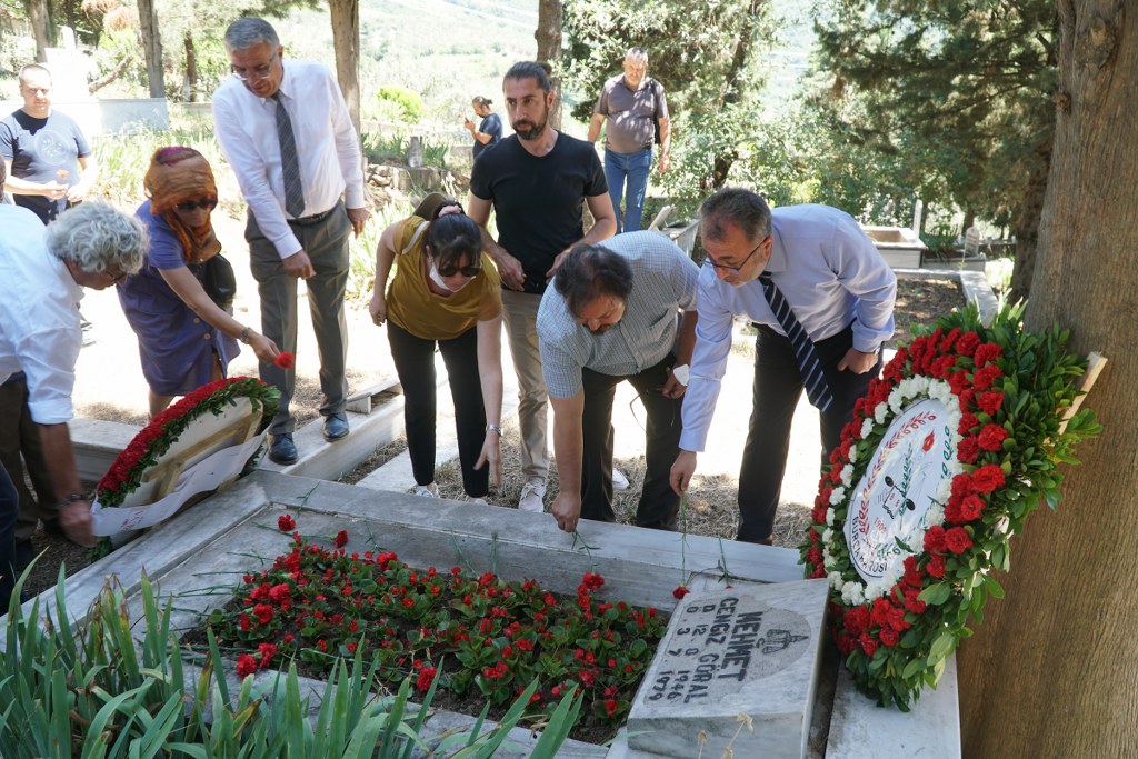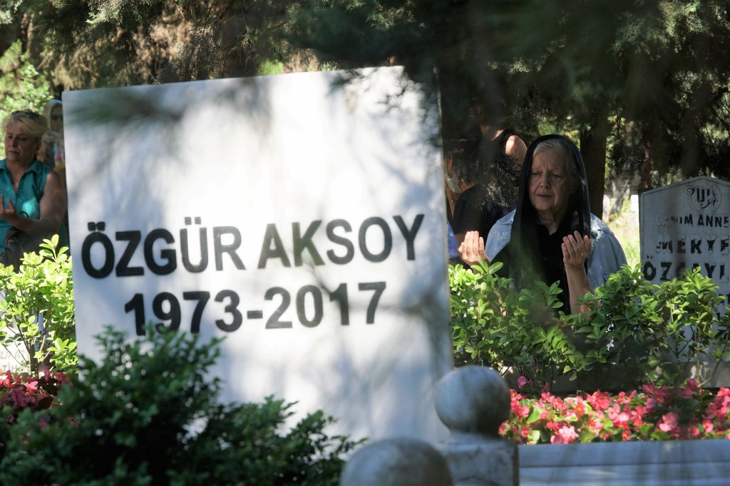 Konuşmaların ardından babası ve meslektaşı ile yan yana bulunan Av. Özgür Aksoy'un mezarına karanfiller bırakıldı.