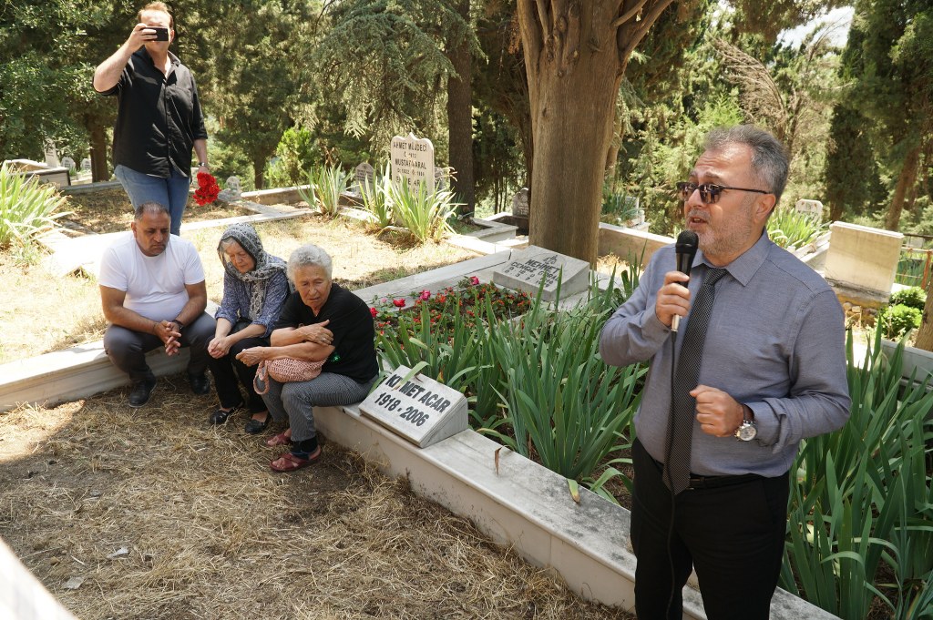 Daha sonra Orhangazi Yeniköy Mezarlığı'na geçildi. Bursa Barosu Başkanı Av. Metin Öztosun, Özgür Aksoy'u anarken, birlikte tiyatro sahnesinde yer aldıklarını ifade etti, Aksoy'un adalet ve barış için aşkla mücadele ettiğini, o mücadeleyi sürdürmeye kararlı olduklarını anlattı.