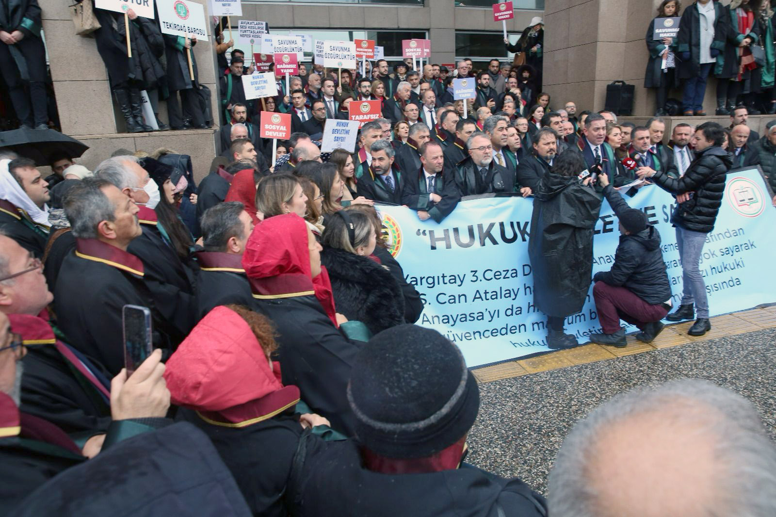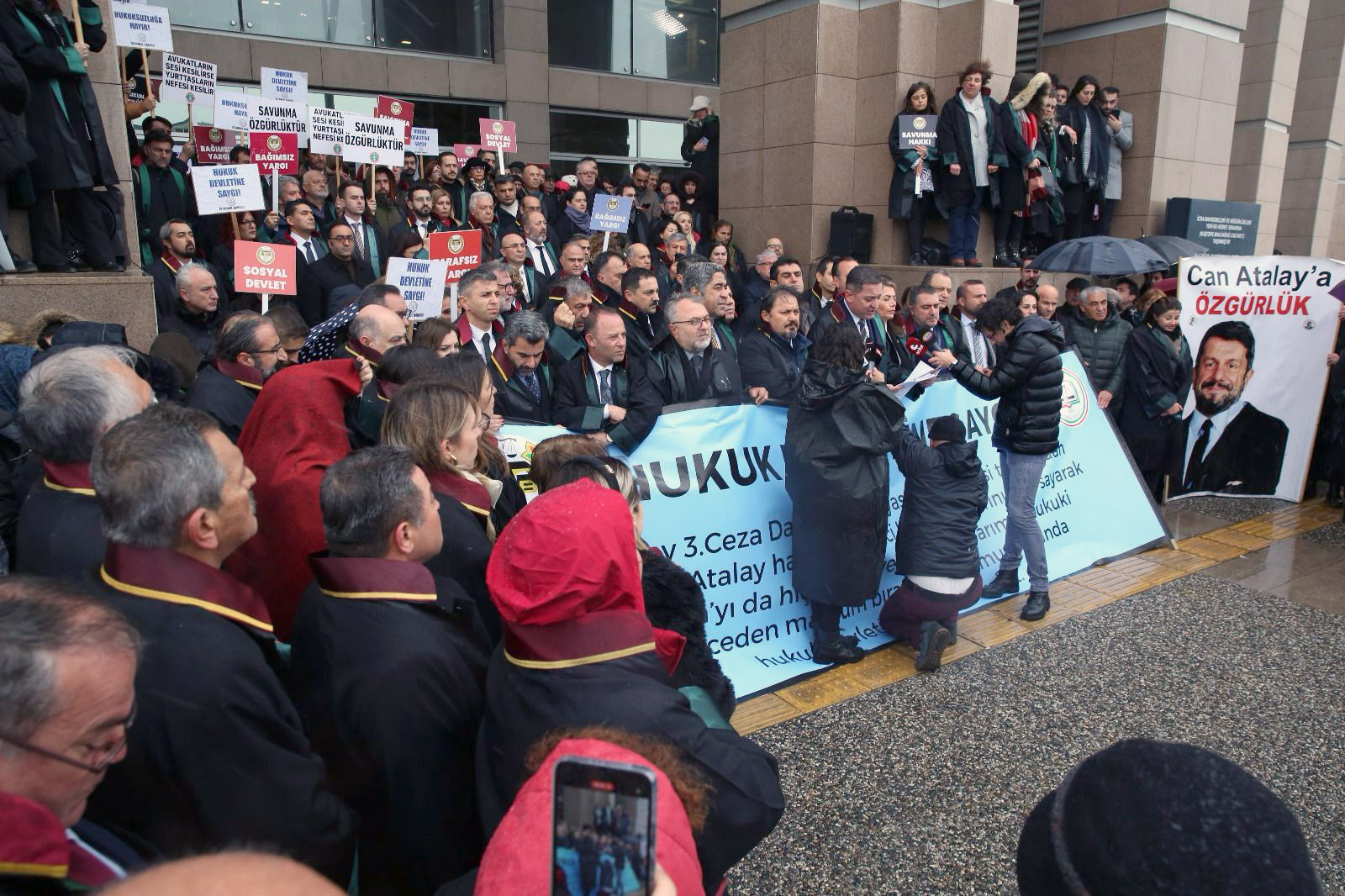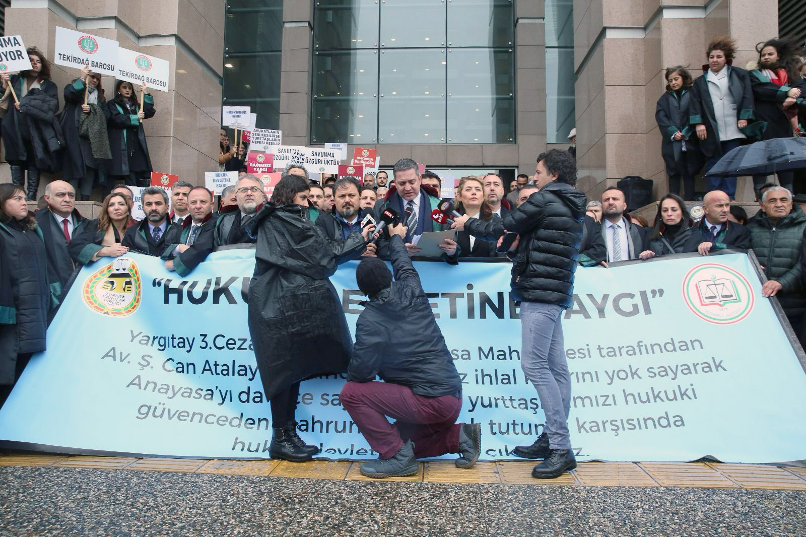 Türkiye Barolar Birliği (TBB) ve İstanbul Barosu'nun, Yargıtay 3. Ceza Dairesi'nin, Anayasa Mahkemesi tarafından Av. Ş. Can Atalay hakkında ikinci kez verilen ihlal kararını yok sayarak Anayasa'yı da hiçe sayan ve tüm yurttaşları hukuki güvenceden mahrum bırakacak tutumu karşısında hukuk devletine sahip çıkma çağrısına çok sayıda baro başkanı ile avukat katıldı.