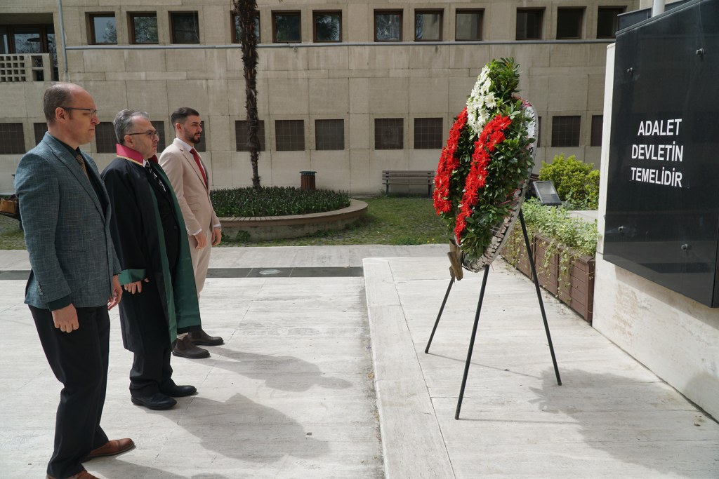 Ulu Önder Mustafa Kemal Atatürk ve şehitler için saygı duruşunun ardından İstiklal Marşı'nın okunmasıyla başlayan törende Bursa Barosu Başkanı Av. Metin Öztosun, Atatürk Anıtı'na çelenk sundu.
