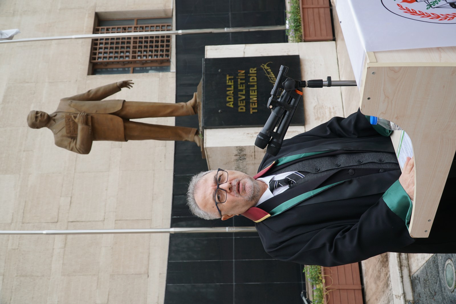 Bursa Barosu, 5 Nisan Avukatlar Günü törenini Adalet Sarayı bahçesinde gerçekleştirdi. Bursa Barosu yönetim kurulu ile diğer kurul üyeleri ve avukatların katılımıyla düzenlenen törende Bursa Barosu Başkanı Av. Metin Öztosun, yönetim kurulu genç temsilcileriyle birlikte Atatürk anıtına çelenk sundu. Bursa Büyükşehir Belediye Bandosu eşliğinde önce saygı duruşunda bulunuldu, ardından İstiklal Marşı okundu. Törene katılana meslektaşlarına ve adliye bahçesindeki yurttaşlara seslenen Öztosun'un konuşması, Türkiye'nin fotoğrafını ortaya koydu. Öztosun şöyle konuştu: