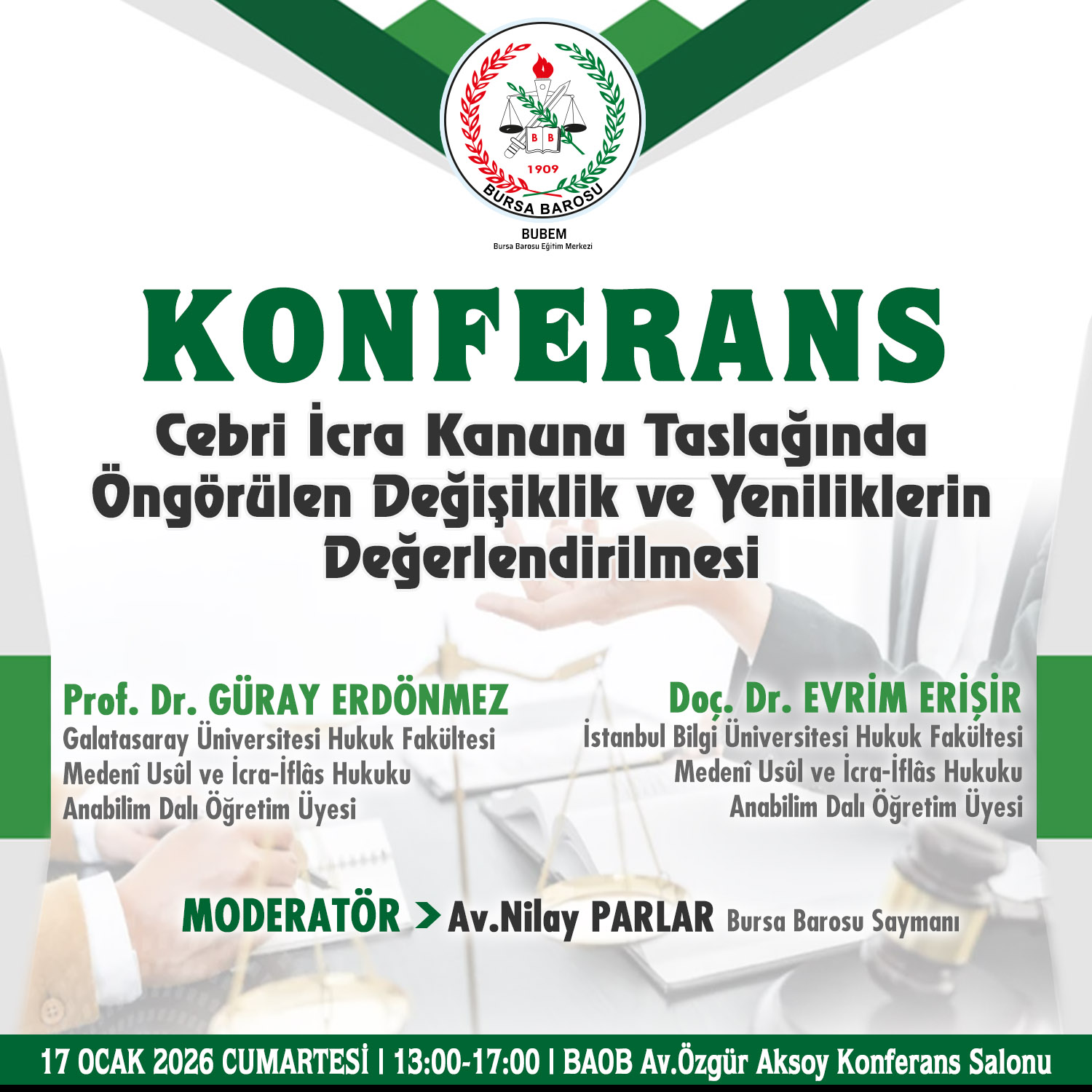 KONFERANS: “CEBRİ İCRA KANUNU TASLAĞINDA ÖNGÖRÜLEN DEĞİŞİKLİK VE YENİLİKLERİN DEĞERLENDİRİLMESİ”