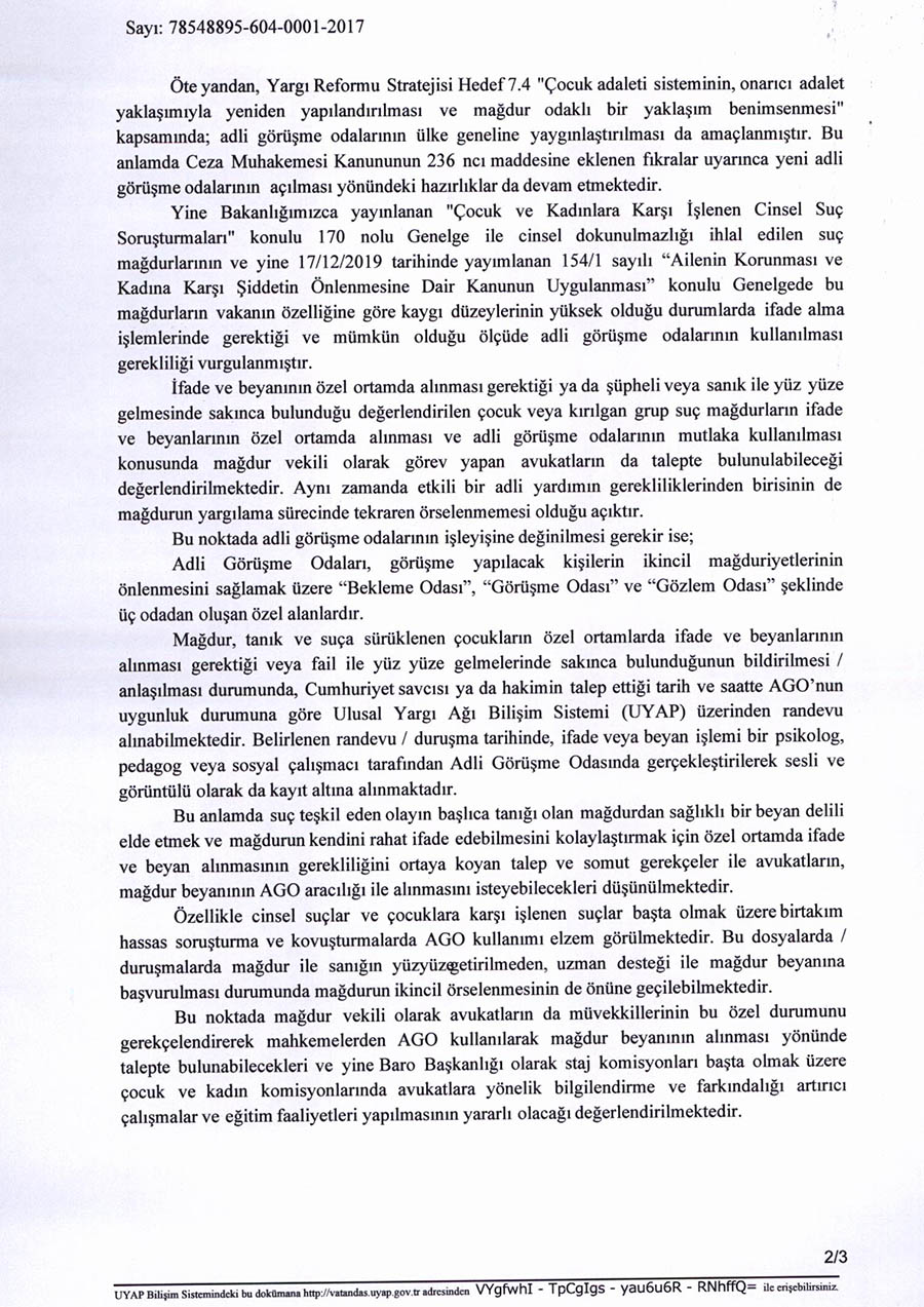 Adalet Bakanlığı Ceza İşleri Genel Müdürlüğü Mağdur Hakları Daire Başkanlığı'nın "AGO Uygulamaları / Farkındalık" hakkındaki yazısı